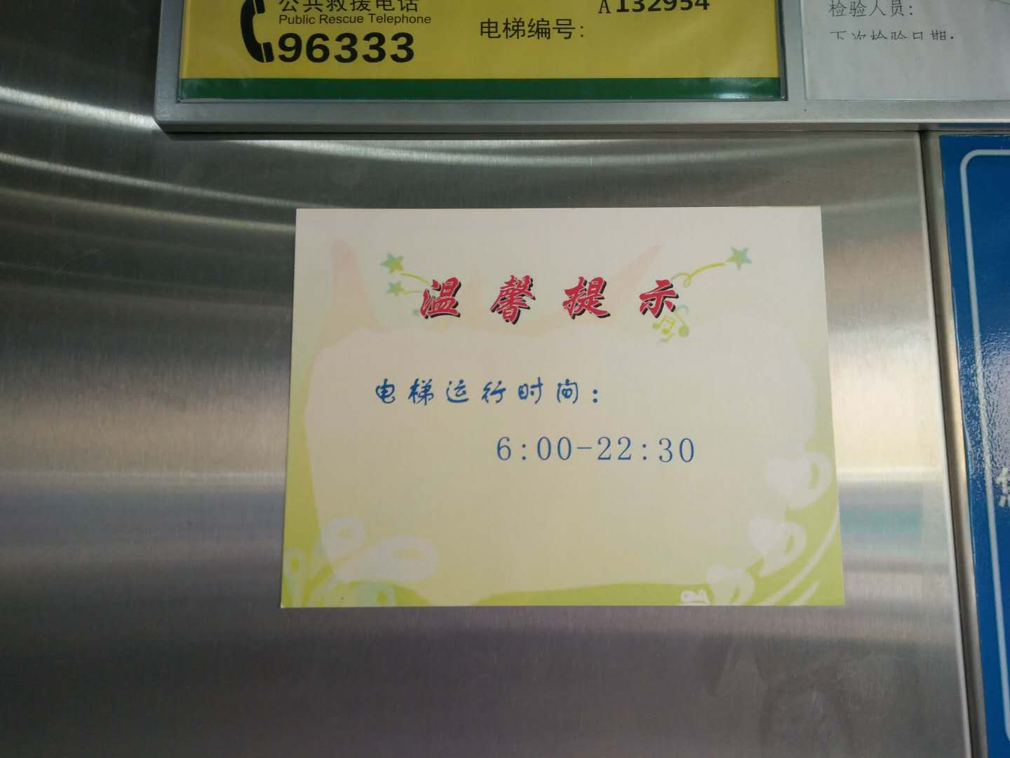 人行天橋6座電梯原運(yùn)行時(shí)間為早晨6:00至夜間21:00。自2018年6月1日起,公司運(yùn)維管理人員增加工作時(shí)間,將電梯夜間運(yùn)行時(shí)間延長至22:30。