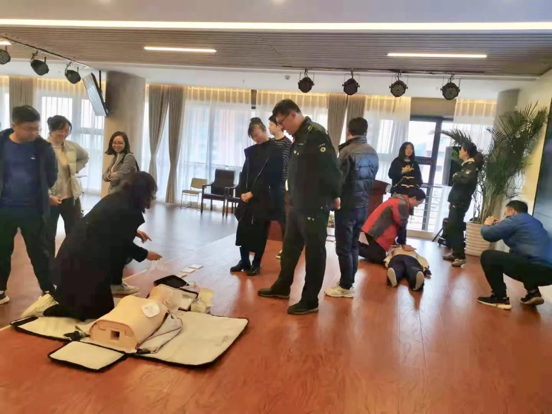 急救中心講師通過參與式的教學(xué)方法和圖文、視頻相結(jié)合的展現(xiàn)形式,通俗易懂地將深?yuàn)W的醫(yī)學(xué)急救知識(shí)向在場(chǎng)的學(xué)員進(jìn)行了講解。在系統(tǒng)地學(xué)習(xí)了基礎(chǔ)知識(shí)和急救流程后,通過模擬場(chǎng)景練習(xí)了心肺復(fù)蘇術(shù)、自動(dòng)體外除顫儀(AED)的使用、外傷止血包扎等操作,培訓(xùn)導(dǎo)師逐一給予了耐心詳盡的指導(dǎo)。“理論+實(shí)踐”的教學(xué)模式下學(xué)員學(xué)習(xí)熱情高漲,主動(dòng)參與實(shí)踐中,教學(xué)效果良好。