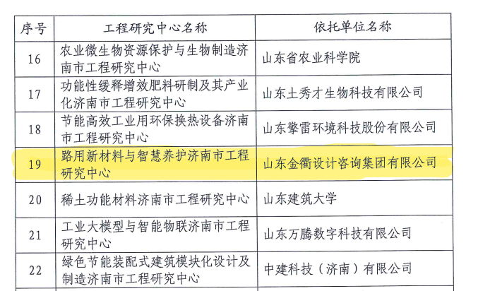 近日,濟(jì)南市發(fā)展和改革委員會下發(fā)《關(guān)于公布2024年度認(rèn)定濟(jì)南市工程研究中心名單的通知》,建設(shè)集團(tuán)所屬山東金衢設(shè)計(jì)集團(tuán)有限公司“路用新材料與智慧養(yǎng)護(hù)濟(jì)南市工程研究中心”(以下簡稱工程研究中心)經(jīng)嚴(yán)格考察、評審和公示,成功入選,這是2024年金衢集團(tuán)公司繼濟(jì)南市重點(diǎn)實(shí)驗(yàn)室、專家工作站、服務(wù)業(yè)創(chuàng)新中心后獲批的又一科創(chuàng)平臺。