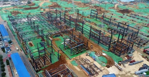 位于項(xiàng)目最南側(cè),最先開工的五號(hào)展館主體鋼結(jié)構(gòu)已基本完成。