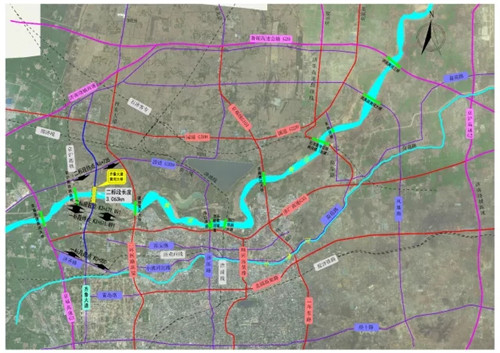 兩座大橋均按照雙向八車(chē)道一級(jí)公路標(biāo)準(zhǔn)建設(shè),兼顧城市主干路功能,設(shè)計(jì)速度60公里/小時(shí),跨黃段橋梁范圍為公軌合建的橋梁形式,中間預(yù)留城市軌道交通空間,滿足城市軌道交通縱斷面相關(guān)技術(shù)條件。