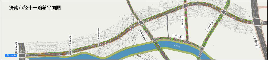 經(jīng)十一路(南辛莊西路-陽光新路)建設(shè)工程位于濟(jì)南市槐蔭區(qū),東起陽光新路,西至南辛莊西路,道路規(guī)劃紅線寬度為30米,快車道雙向四車道,全長約1967.99米,投資概算1.39億元。主要建設(shè)內(nèi)容包括新建道路、敷設(shè)雨污水管線,配套實(shí)施給水、燃?xì)狻崃Α⑷蹼姟㈦娏Φ韧两üこ蹋竭M(jìn)行道路綠化、路燈、交通設(shè)施等建設(shè)。