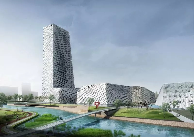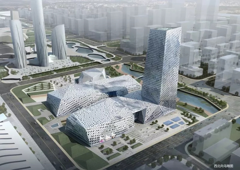三館二期項目北臨興福寺路,東至臘山河?xùn)|路,西至臘山河西路,南接“一院三館”,北鄰印象濟南泉世界。項目規(guī)劃總用地范圍4.65公頃,總建筑面積21.5萬㎡,裙房6層,超高層塔樓34層。其中,地上建筑面積約15萬㎡,地下建筑面積約6.5萬㎡,提供700余個車位。