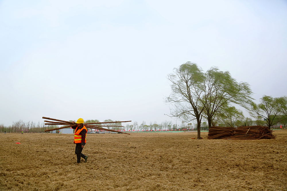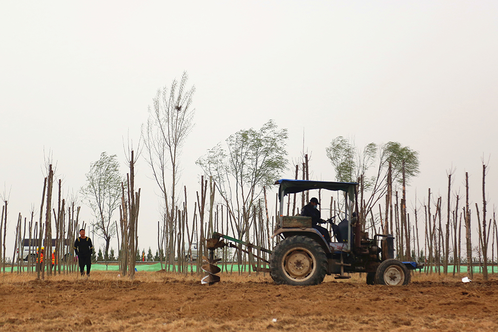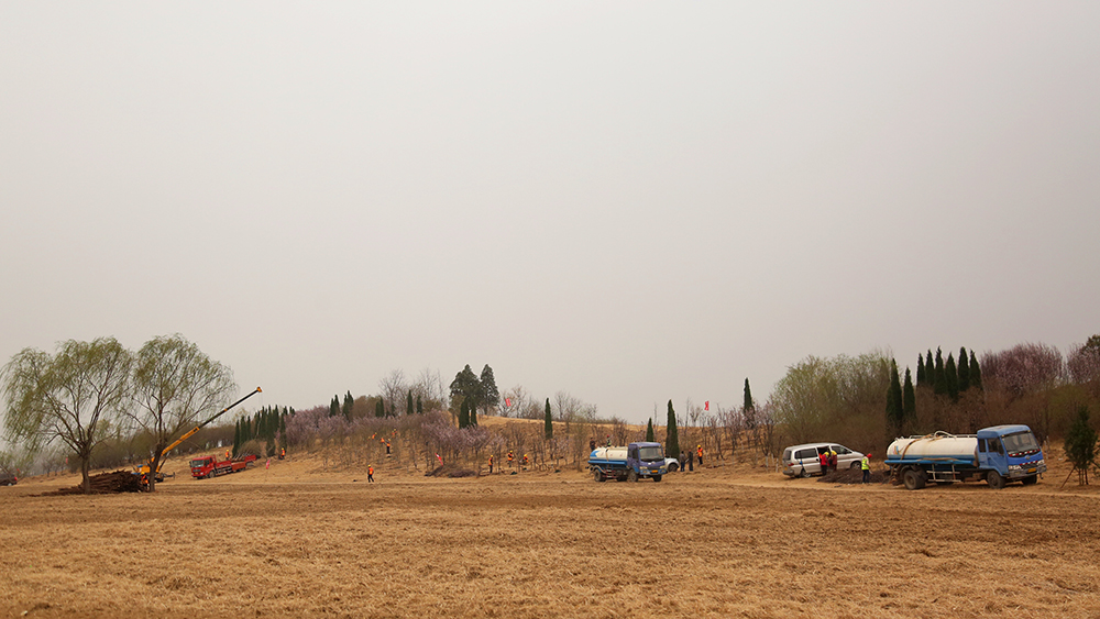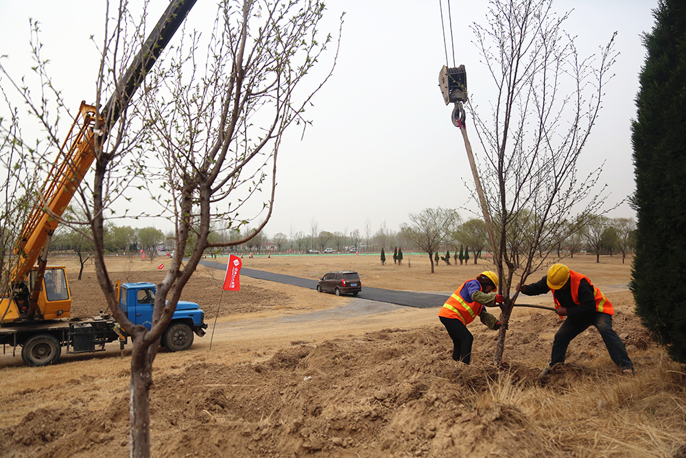 負(fù)責(zé)項目具體建設(shè)的匯友園林公司在接到工作任務(wù)后,迅速響應(yīng),3月24日全面調(diào)度,組建成立了40人的項目部,3月26日正式進(jìn)場施工。截至目前,項目已搭建完成辦公室、會議室、宿舍、廁所等辦公配套設(shè)施,已進(jìn)揚大型挖掘機(jī)5臺、小型挖掘機(jī)10臺、控坑機(jī)6臺、旋耕梨5臺、吊車3臺、水車5部。在300余人施工隊伍的奮力推進(jìn)下,目前已整地15000平米、挖樹坑12000個、栽苗1500棵。近期,計劃5天內(nèi)鋪設(shè)管道5000米,6天挖坑30000個,10天栽苗40000棵(309北側(cè)20米及北岸未定)。