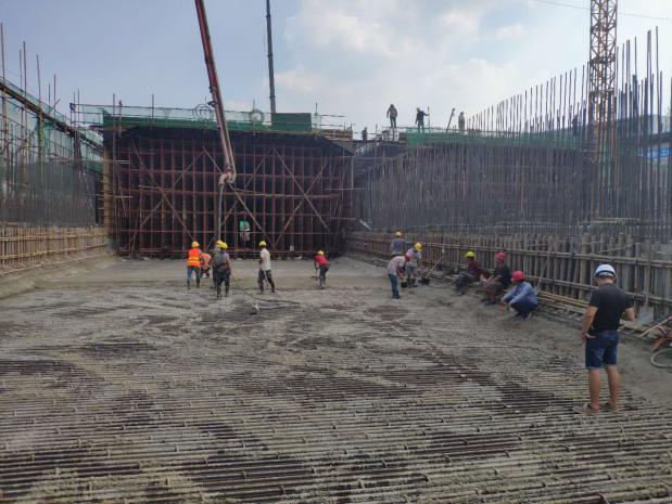 根據(jù)市委、市政府工作部署,車(chē)腳山隧道南洞口與二環(huán)南東延快速路匝道連接段納入鳳凰路工程,采用箱涵加地面道路組合形式,長(zhǎng)約720米。工期緊、難度大,在各參建單位的大力支持與配合下,不斷攻克難關(guān),工程順利有序開(kāi)展,現(xiàn)階段東線箱涵底板施工60余米,西線箱涵底板施工30余米。
