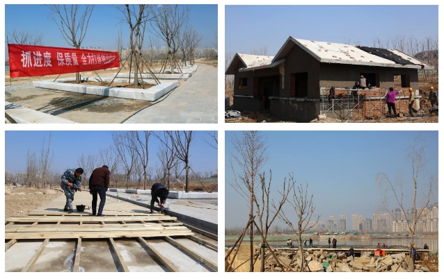 園林二期分為A、B兩個(gè)區(qū)域,功能性均為園林及濕地景觀,總面積約2257畝(不含覆綠項(xiàng)目),為確保五一達(dá)到開園條件,每天二期施工人數(shù)能達(dá)到600余人,目前正進(jìn)行園路及廣場鋪裝、公廁及售賣、駁岸、木棧道、挑臺、廊架、水榭等建設(shè)施工。“園區(qū)植物種類有百余種,櫻花、海棠、玉蘭等樹開花后能形成塊狀景觀帶,將為市民提供一個(gè)新的踏春好去處”,項(xiàng)目現(xiàn)場負(fù)責(zé)人表示。