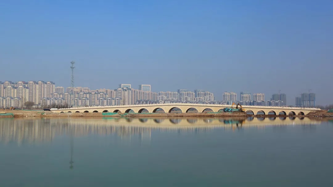 崇正橋煙雨橋外裝進(jìn)行中,21孔橋創(chuàng)濟(jì)南之最
