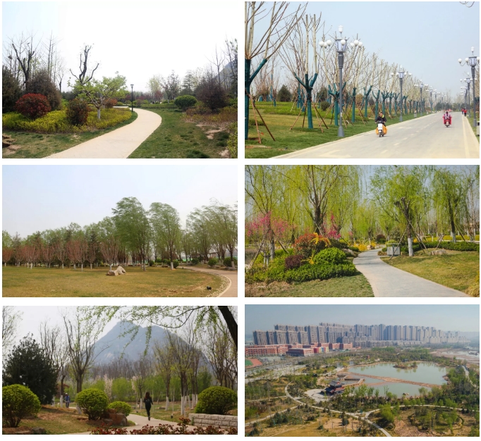 園區(qū)在設(shè)計(jì)建設(shè)時(shí)注重區(qū)分功能性和體驗(yàn)性,華山北面部分定位為濕地展示區(qū),展示濕地的景觀特性,融合體驗(yàn)式科教,綠化景觀多為豐富層疊狀,各類植物栽種交錯(cuò)有致,層次豐富,移步至華山東面及東南面,這片區(qū)域定位為山林文娛區(qū),結(jié)合北臥牛山和驢山形成特色山林景觀,靠近山體部分的植物景觀結(jié)構(gòu)上則多以大開大合景觀為主,大片草地開闊寬廣,風(fēng)格迥異,賞玩別有趣味。