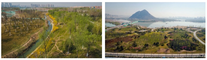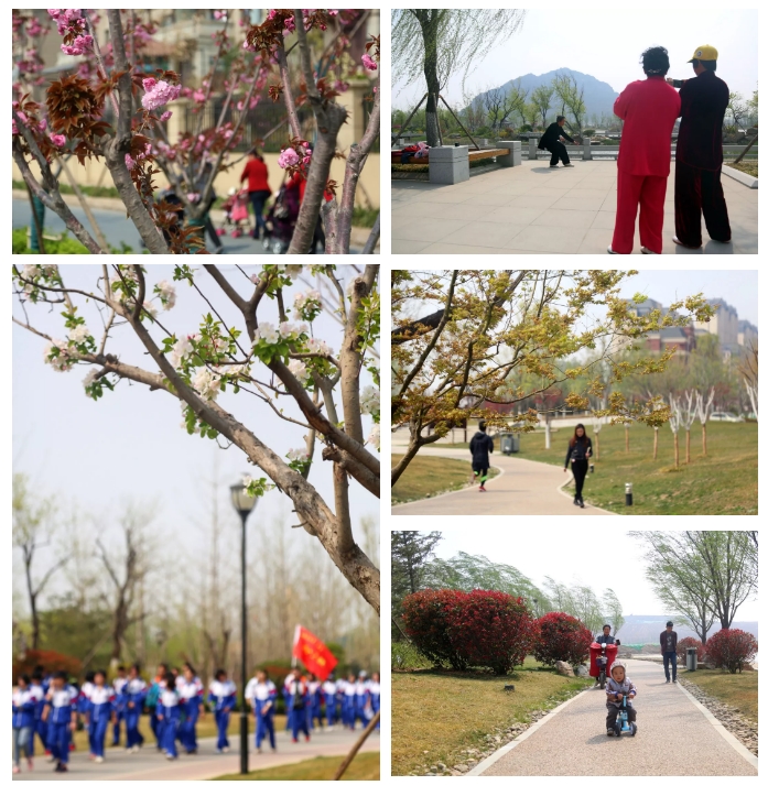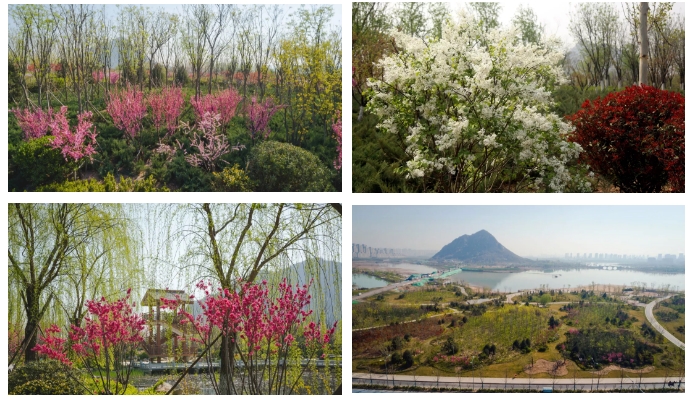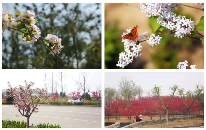 在華山歷史文化濕地公園一期內(nèi),湖邊碧桃、海棠、櫻花等樹木盛開,連翹燦爛,色彩斑斕,步移景異,快車道旁草木叢生,丁香花開沁人心脾,蜂蝶相伴,生機(jī)勃勃,吸引眾多市民游客前來游玩賞花。