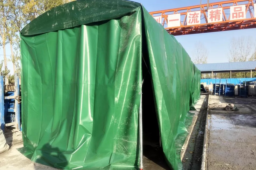 為克服低溫影響,項(xiàng)目預(yù)制梁板冬季養(yǎng)生主要采用暖棚蒸汽養(yǎng)生方法。利用鋼筋或鍍鋅管搭設(shè)養(yǎng)生暖棚,暖棚用塑料布密封,外面再覆蓋厚篷布,使厚棚布和梁板之間有空隙,確保梁板各部位能夠均勻保溫保濕。同時(shí),現(xiàn)場(chǎng)安排專人負(fù)責(zé),定期測(cè)量大棚內(nèi)外溫度,確保蒸汽養(yǎng)生工作平穩(wěn)順利進(jìn)行。