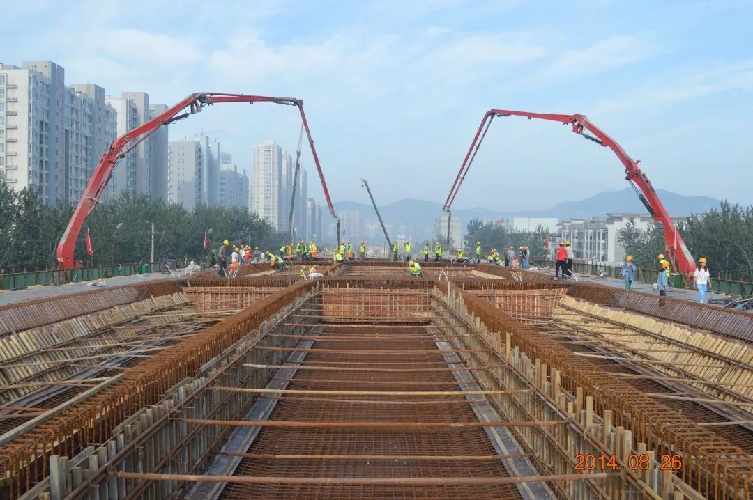 濟南市二環(huán)南路建設(shè)工程(西段)第一標(biāo)段由濟南黃河路橋建設(shè)集團有限公司承建,該標(biāo)段西起G104,東至石房峪隧道西口,地面道路全長1400米,規(guī)劃紅線寬60-80米,小北山石方開挖100萬立方米,快速路長700米、寬度26.5米,跨線橋及引道長500米,路塹長200米,同步建設(shè)雨、污水管線、電力、照明、通信、給水、燃氣、熱力等市政管線及配套設(shè)施。工程設(shè)計融入海綿城市理念,采用“凈、蓄、滯、滲、排、用”等措施,提高雨水利用率,減少城市內(nèi)澇發(fā)生,橋面鋪裝采用瀝青砂防水調(diào)平層及兩層SMA提高抗車轍能力。