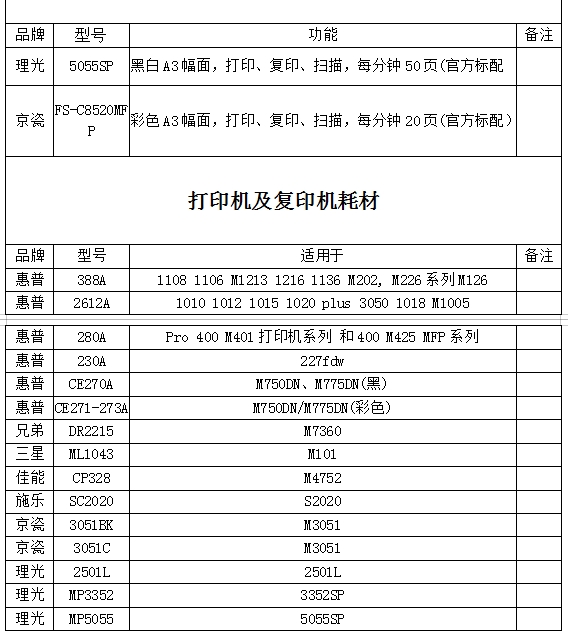 現(xiàn)對集團打印機、耗材及周邊設(shè)備采購選取供應商進行詢價,有關(guān)事項通知如下,歡迎各單位參加報價。