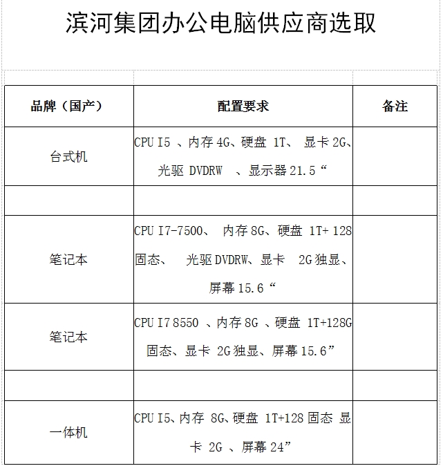 現(xiàn)對集團辦公電腦采購選取供應(yīng)商進行詢價,有關(guān)事項通知如下,歡迎各單位參加報價。