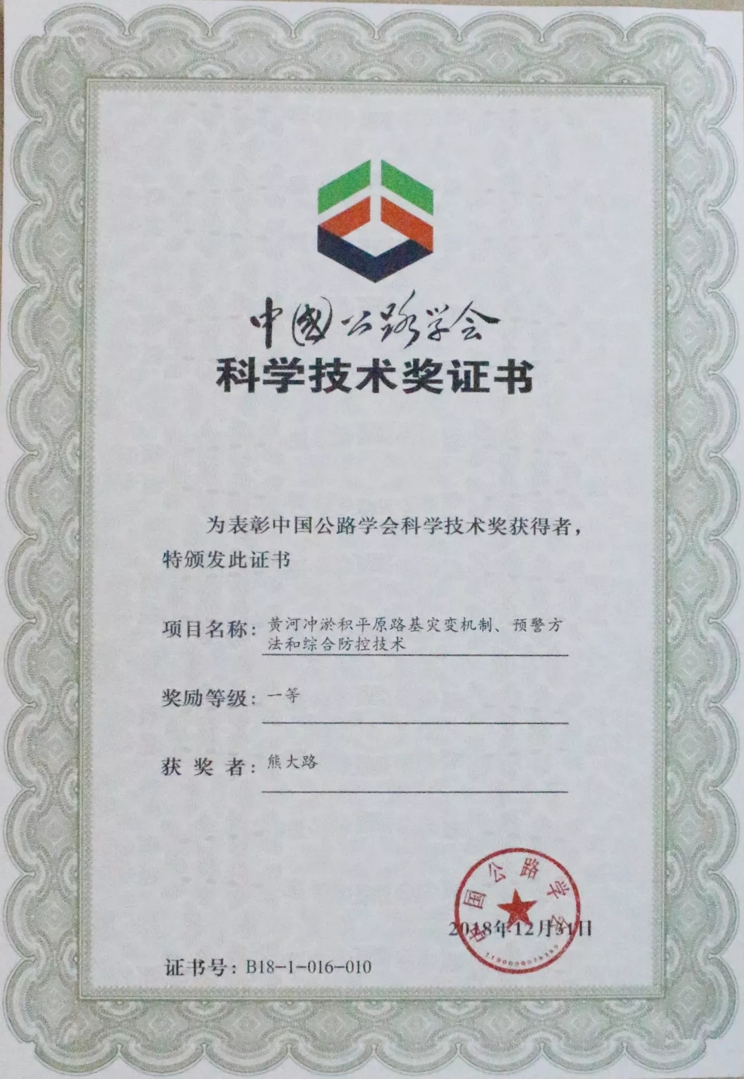 2019年6月15日,由中國公路學(xué)會組織的“2018年度中國公路學(xué)會科學(xué)技術(shù)獎頒獎大會”在北京國家會議中心召開。濟(jì)南金曰公路工程有限公司參與研究的課題《黃河沖淤積平原路基災(zāi)變機(jī)制、預(yù)警方法和綜合防控技術(shù)》榮獲一等獎。