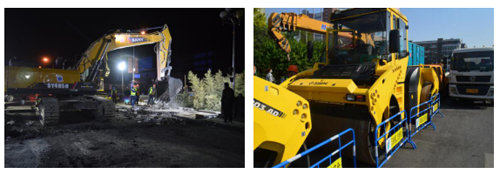 現(xiàn)場共有銑挖機(jī)、銑刨機(jī)、各型挖掘機(jī)、200t起重機(jī)、壓路機(jī)等119臺機(jī)械及備用機(jī)具。