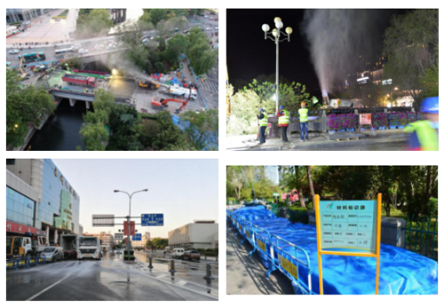 現(xiàn)場通過抑塵車霧炮、灑水車、清掃車連續(xù)作業(yè),物料嚴(yán)密覆蓋,最大程度抑制揚(yáng)塵。
