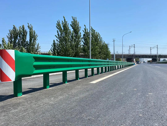 在施工中,金宇公司還積極探索了施工工藝與質(zhì)量相關(guān)聯(lián)工作,施工中波形梁護(hù)欄采用綠色環(huán)氧鋅基材料,環(huán)氧鋅基聚酯復(fù)合涂層技術(shù)是國(guó)標(biāo)GB/T18226—2015《高速公路交通工程鋼構(gòu)件防腐技術(shù)條件》推廣的創(chuàng)新技術(shù)。