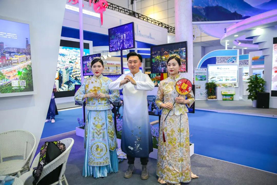 在槐蔭區(qū)展位旁的小舞臺前,來自江湖藝社的多名演出者身著長袍,上演了幾出精彩的快板戲,圍觀人越聚越多,不時有人鼓掌喝彩。此后羅芙威宮宴會酒店帶來的中西式婚禮演藝“穿石鑿空只為我愛,漂洋過海恰好你在”浪漫氣息十足,引來眾多觀眾圍觀拍照。