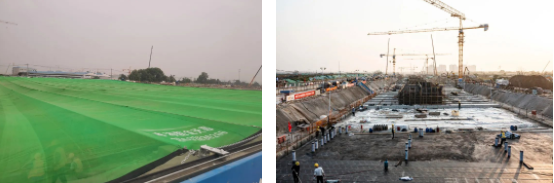 “之前干的高速公路項目比較多,荒郊野外對環(huán)保上要求相對來說要松一些,后來隨著環(huán)保要求的逐漸提高,尤其是現(xiàn)在的黃河大道項目,要全線覆蓋密布網(wǎng),一開始有些抵觸,覺得都是動土的活,哪可能一點泥土也不見,隨著施工過程的進展,思想上也就慢慢轉變過來了了,覺得確實應該這么做”,辛崇升說。
