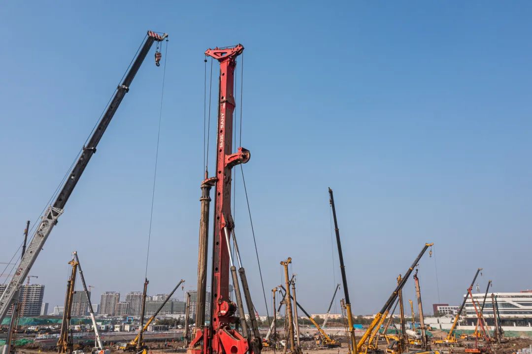 樁基施工準(zhǔn)備階段,根據(jù)項(xiàng)目情況優(yōu)化編制基礎(chǔ)工程施工組織方案,制定樁基施工布置圖,按基樁類型、特點(diǎn)劃分9個(gè)施工區(qū)域,明確基樁編號(hào)、施工順序、基樁檢測(cè)等策劃內(nèi)容,有效串聯(lián)設(shè)計(jì)、施工、監(jiān)理、檢測(cè)、驗(yàn)收等環(huán)節(jié)。在3萬(wàn)平方米打樁區(qū)域,同時(shí)布置了20余臺(tái)旋挖鉆機(jī)、30余臺(tái)汽車吊、20余臺(tái)裝載機(jī),施工勞務(wù)人員300余人,投入9個(gè)施工區(qū)域24小時(shí)不間斷作業(yè)。自2021年10月22日開(kāi)始全面鉆進(jìn),11月26日,澆筑完成最后一根樁基,山大二院項(xiàng)目全體人員迎難而上,酣戰(zhàn)月余,克服暴雪、大風(fēng)等惡劣天氣,施工日均完成樁基80余顆,順利完成2452顆樁基的施工,完成樁基產(chǎn)值約1億元,占項(xiàng)目建安總投資的4.2%。完成項(xiàng)目建設(shè)第一個(gè)里程碑節(jié)點(diǎn),實(shí)現(xiàn)全面進(jìn)入下步土方開(kāi)挖施工節(jié)點(diǎn)跨越。