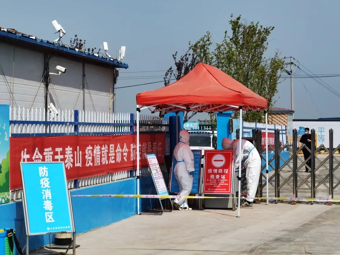 在濟(jì)南市新舊動(dòng)能轉(zhuǎn)換起步區(qū)大橋安置五區(qū)項(xiàng)目入口,幾名身穿防護(hù)服的工作人員嚴(yán)格對(duì)進(jìn)出場(chǎng)人員進(jìn)行信息自動(dòng)化登記和健康信息核驗(yàn)。