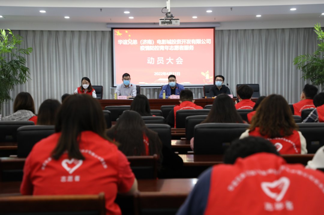 按照市委、市政府相關(guān)指示精神和濟(jì)南城市建設(shè)集團(tuán)統(tǒng)一部署,4月21日,華誼兄弟(濟(jì)南)電影城投資開發(fā)有限公司召開疫情防控志愿服務(wù)動員大會,動員公司志愿者踴躍參與村(社區(qū))人員落地、入戶排查和政策宣傳等疫情防控工作,筑牢群防群治防線。