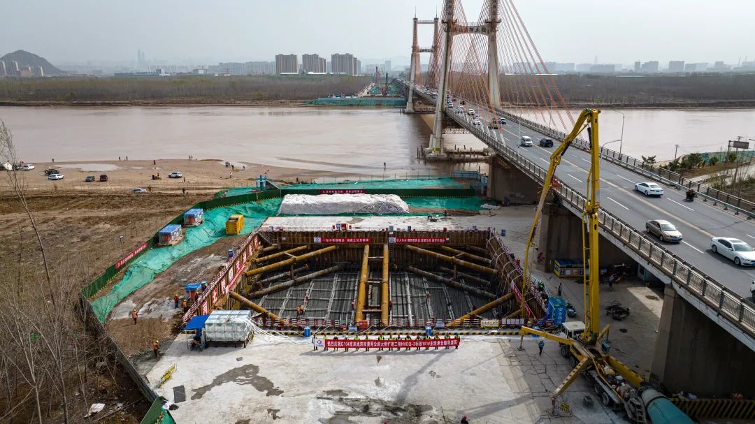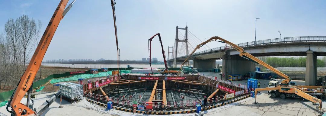 101#主墩承臺是主橋段體積最大的承臺,項(xiàng)目部科學(xué)組織、合理部署,優(yōu)化各項(xiàng)施工方案,強(qiáng)化技術(shù)創(chuàng)新,率先完成首座主墩承臺一步混凝土澆筑,有力促進(jìn)了黃河大橋整體工作平穩(wěn)推進(jìn)。