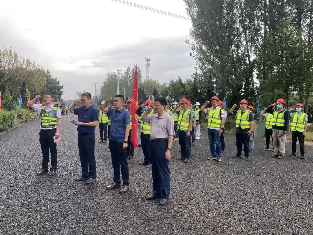 9月14日,由濟(jì)南金諾公路工程監(jiān)理有限公司負(fù)責(zé)監(jiān)理的G205山深線泰安臨沂界至蒙陰段大中修工程,在施工現(xiàn)場舉行了“黨建引領(lǐng)、共建同行”黨員突擊隊(duì)成立暨“決戰(zhàn)金秋•大干40天”誓師大會(huì)。