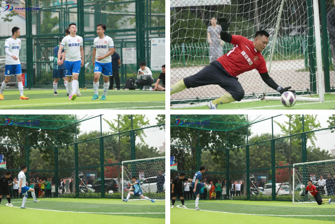 在對陣萊蕪區(qū)代表隊的三、四名決賽中,建設(shè)集團足球隊在先失一球的情況下,面臨比賽開局不順的形勢,以“不到最后一刻永不放棄”的體育精神奮起反擊,在比賽讀秒階段由張國瑞攻入絕平進球,將比賽拖入點球大戰(zhàn)。點球大戰(zhàn)中球隊眾志成城,守門員韓堃兩次撲出對方點球,最終以4:3的比分擊敗萊蕪區(qū)代表隊獲得本屆比賽季軍。