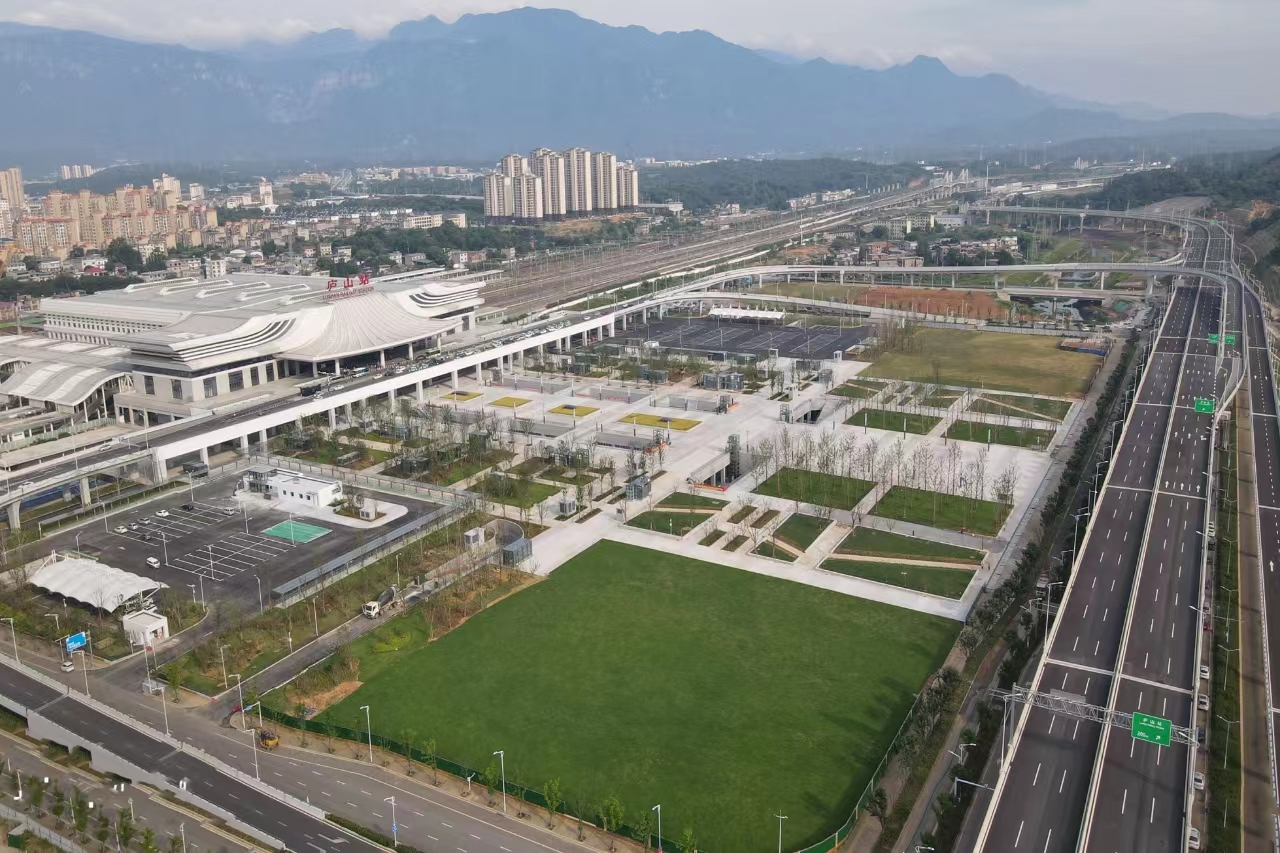九江高鐵樞紐集散廣場規(guī)劃面積約5.7萬平方米,園林綠化面積約1.7萬平方米,工程體量大且施工繁瑣、施工標準要求高。項目部實行“每日現(xiàn)場一碰頭,每周一調(diào)度”舉措,在保障質(zhì)量安全的前提下全力推進施工進度,順利攻克花崗巖材料緊缺、加工周期長等施工重難點,保質(zhì)保量完成集散廣場各項施工任務(wù),為進一步完善九江市城市交通體系貢獻力量。