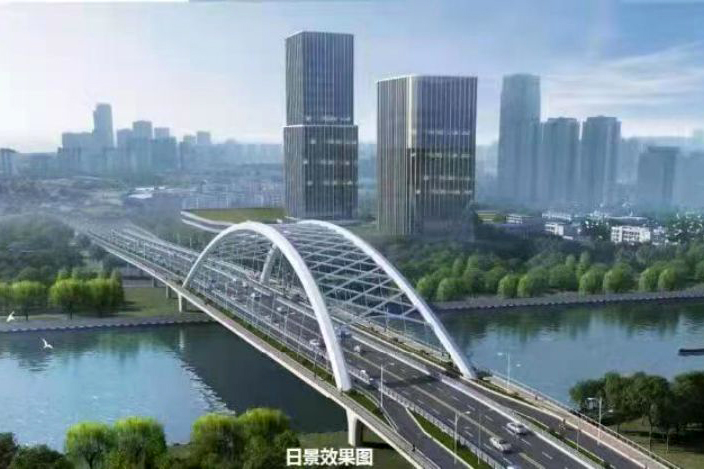 二里橋路跨京杭運河節(jié)點工程是京杭運河上單跨徑最大的橋梁工程,項目起點順接二里橋路,向東延伸至京杭北路,長840米,寬40米,工程總投資約2.85億元。橋梁設計方案為“鏡湖明月”,采用“鋼箱提籃拱”結(jié)構(gòu),造型美觀,與運河兩岸建筑和環(huán)境巧妙融合。