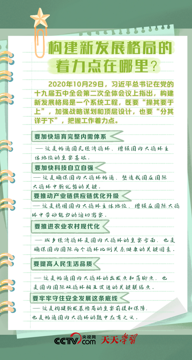 構(gòu)建以國(guó)內(nèi)大循環(huán)為主體、國(guó)內(nèi)國(guó)際雙循環(huán)相互促進(jìn)的新發(fā)展格局,是根據(jù)我國(guó)發(fā)展階段、環(huán)境、條件變化,特別是基于我國(guó)比較優(yōu)勢(shì)變化,審時(shí)度勢(shì)作出的重大決策。構(gòu)建新發(fā)展格局是事關(guān)全局的系統(tǒng)性、深層次變革,是立足當(dāng)前、著眼長(zhǎng)遠(yuǎn)的戰(zhàn)略謀劃。
