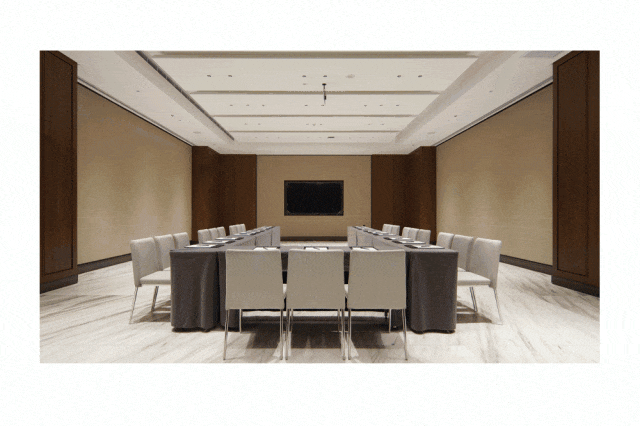 室內(nèi)宴會及會議區(qū)域總面積超5000平方米,酒店內(nèi)最大無柱式多功能宴會廳面積達(dá)1100平方米,能夠承接60桌宴會及千人會議,配備P2.5高清LED顯示屏。