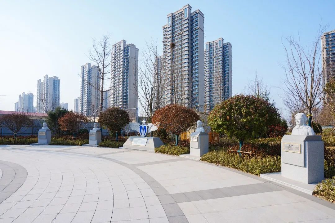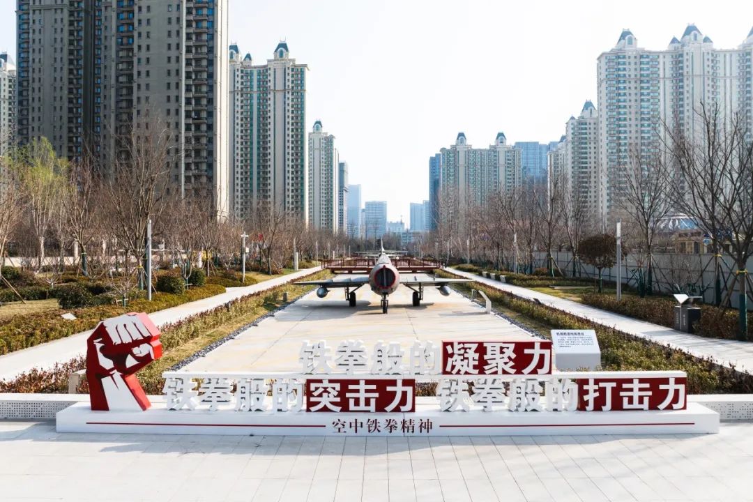 在公園南地塊紀(jì)念廣場(chǎng),通過(guò)展示張莊機(jī)場(chǎng)原駐扎部隊(duì)6位空軍戰(zhàn)斗英雄的雕像和英雄事跡,以及“空中鐵拳精神”展示,傳承紅色基因。
