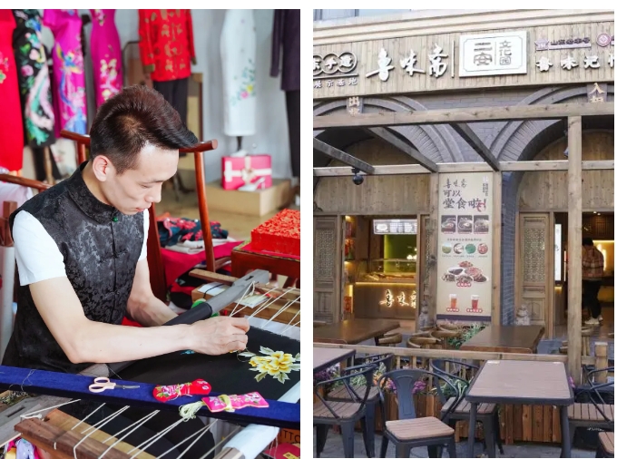 景區(qū)內(nèi)設(shè)有非物質(zhì)文化遺產(chǎn)傳習(xí)基地、戴記魯繡旗袍、魯味齋、二安文化園等非遺展示店鋪,集中展示了濟(jì)南市技、趣、鮮、醫(yī)、藝等諸多方面的人文歷史,是槐蔭區(qū)非遺文化的地標(biāo)性景區(qū)。